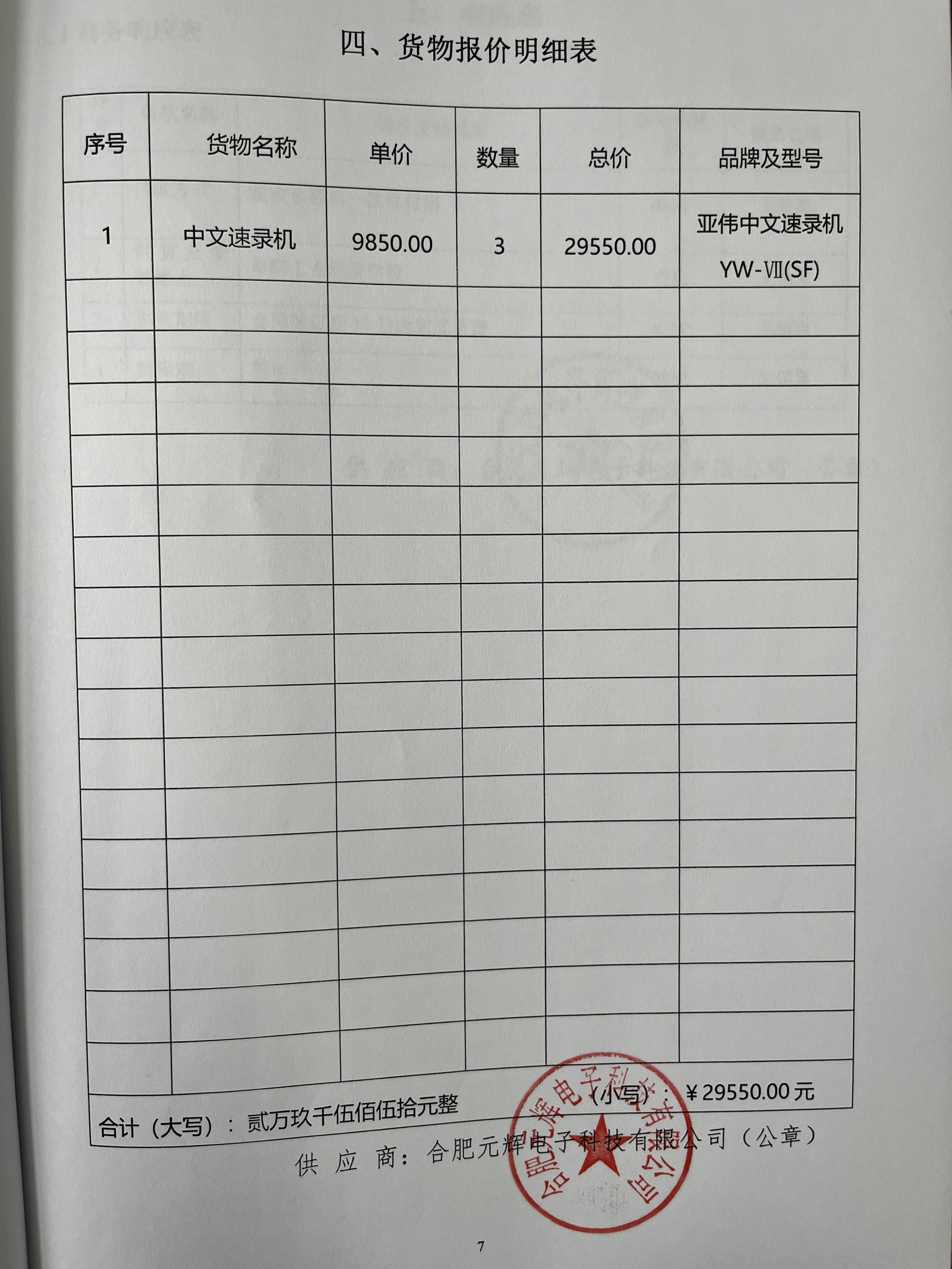 教务科财经商贸专业组中文速录机采购项目中标公示[中标公告]