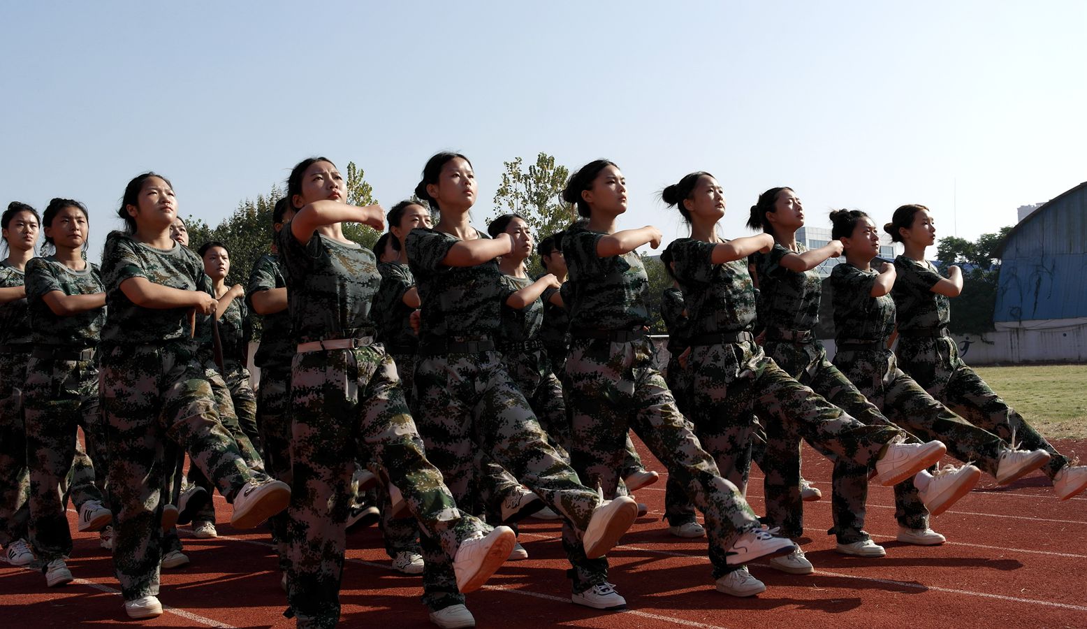 今年的新生军训表演,和往年不同。当方队的新生们在操场后方集结完毕之后,多名身着迷彩作战服、手持步枪的“特种兵”矫捷入场,侧扑、前扑、前滚翻、匍匐前进、模拟射击,进行一场模拟反恐作战……师生喝彩阵阵。希望通过这些军训项目的增加,锻炼同学们的拼搏精神、组织纪律观念,加强军事及身体素质。