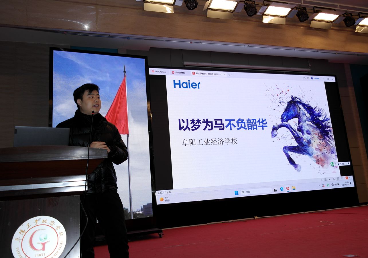 为进一步加强校企深度合作,搭建实习学生选岗和用人单位招聘平台,促进学生与企业之间的双向选择, 12月31日,阜阳工业经济学校在校内多功能报告厅举办专场校园双选会。合肥长安汽车有限公司、合肥海尔空调器有限公司、安徽壹太电器有限公司三家用人单位预约到校宣讲,我校2023级汽车运用与维修、汽车美容、数控技术应用、服务机器人、制冷等专业150余名学生参加本次活动。