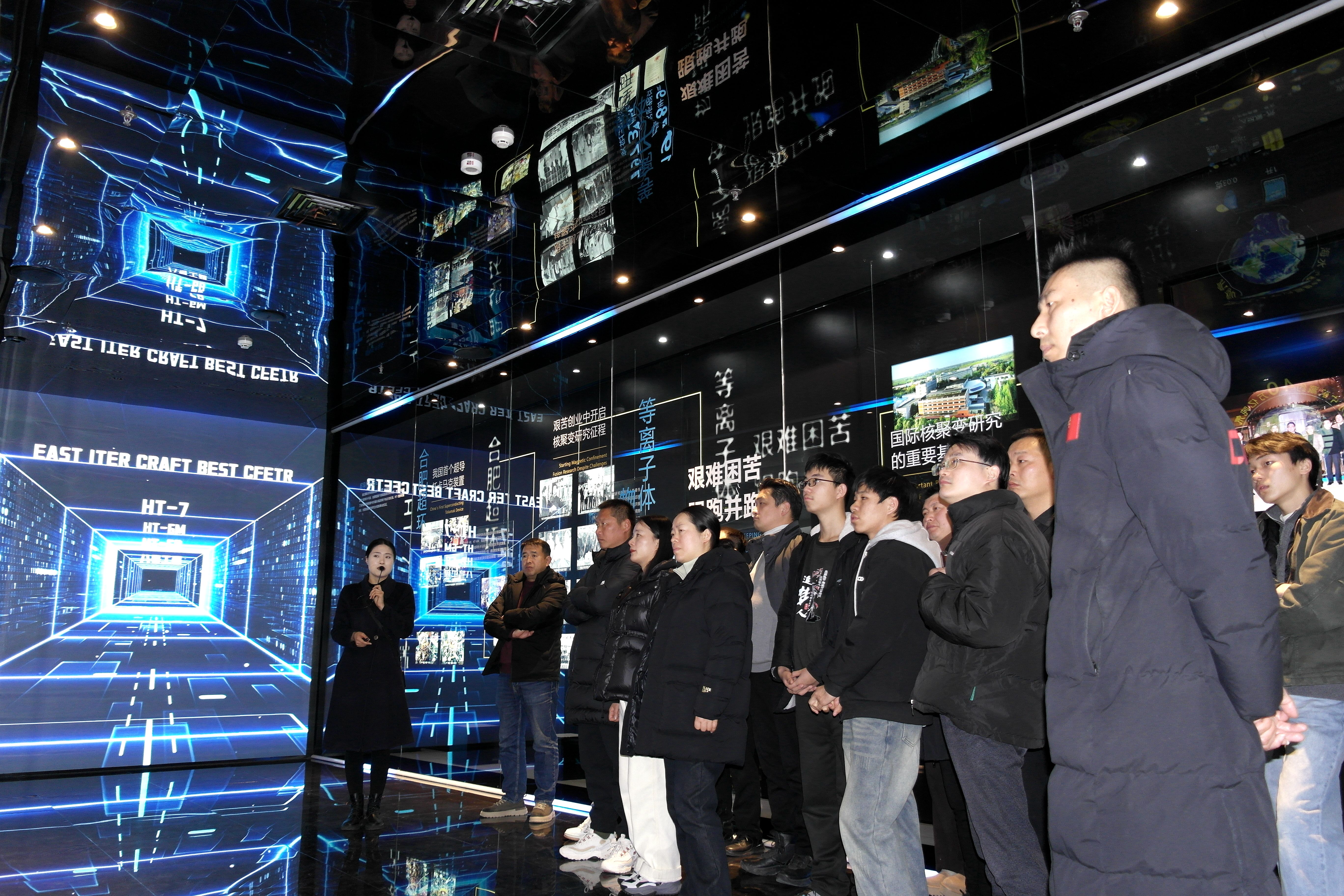 中国科学院等离子体物理研究所是国际热核聚变实验堆(ITER)计划的重要参与单位、全球磁约束聚变研究领域的国家级引领机构之一。学习团实地参观了“东方超环”(EAST)装置,现场了解其运行原理、核聚变能源研发进展及其潜在应用前景。通过近距离接触我国尖端科技的重大成果,师生们不仅直观感受到“大国重器”的磅礴力量,更深刻领悟了“大国工匠”精神的内核,进一步增强了民族自信心、向心力与凝聚力。