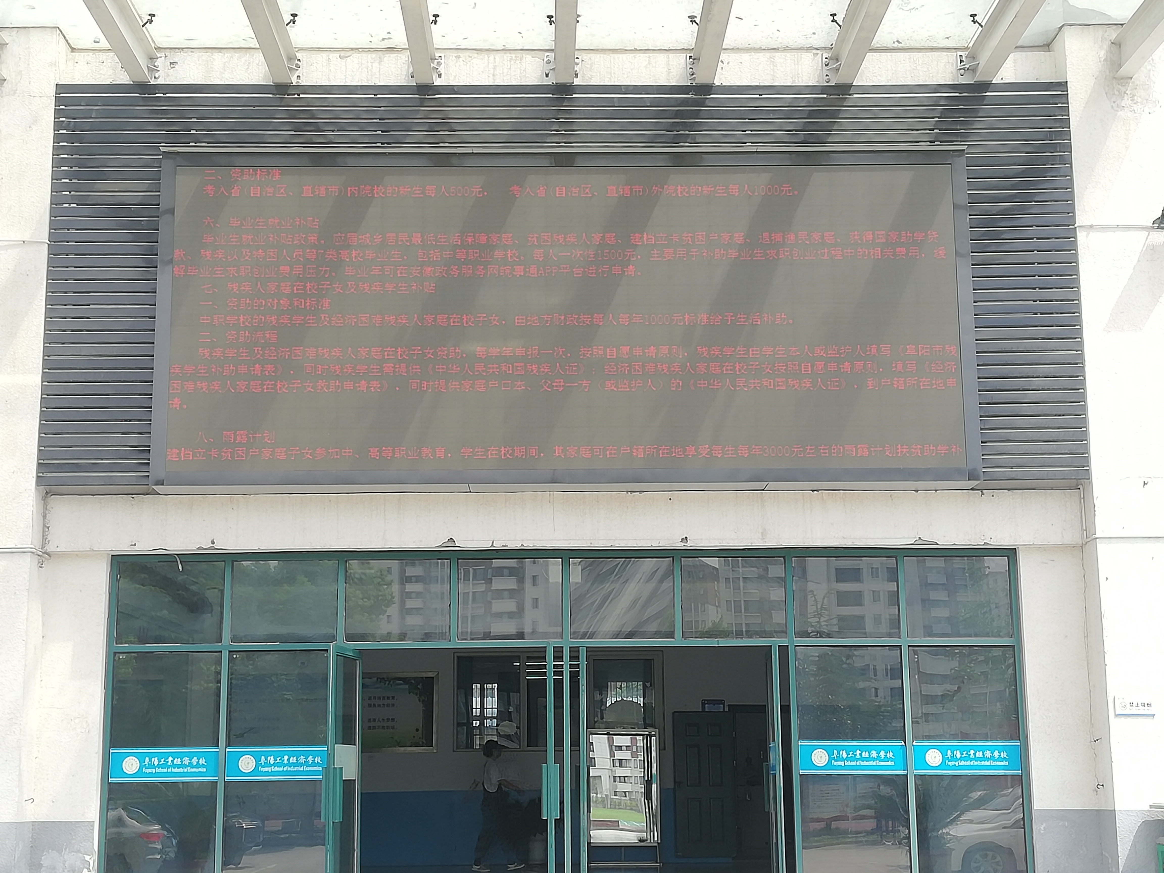 阜阳工业经济学校 资助政策宣传展板及电子显示屏内容图片