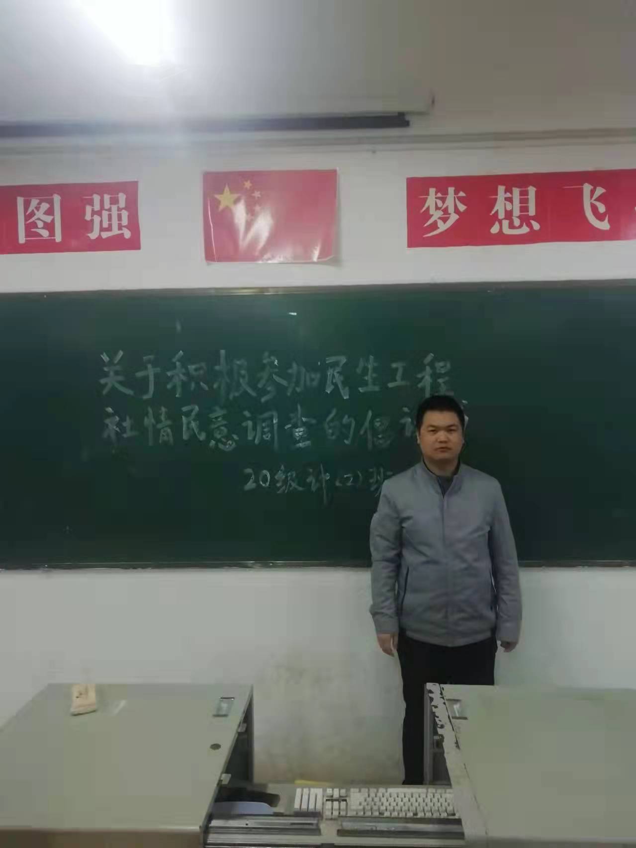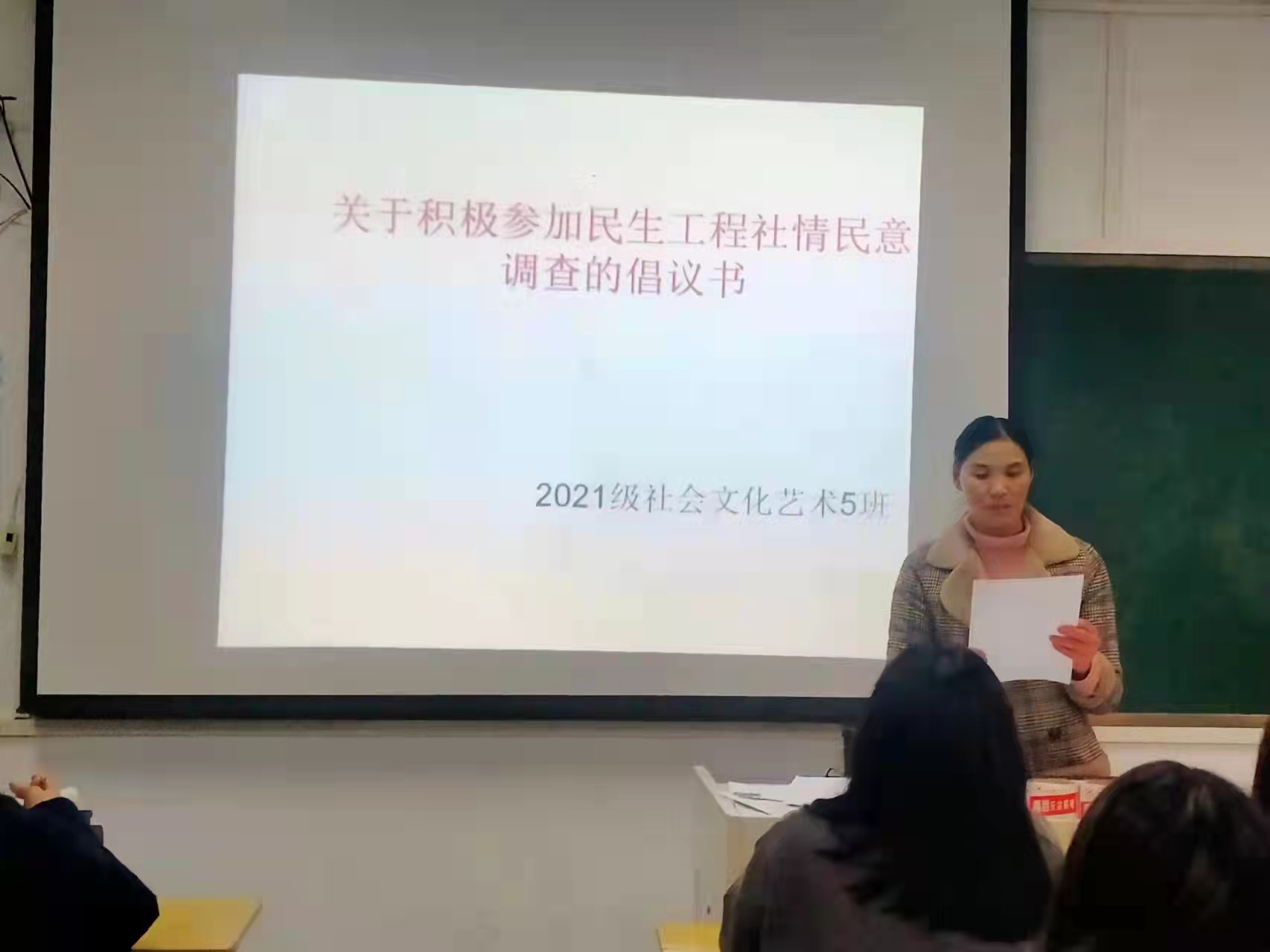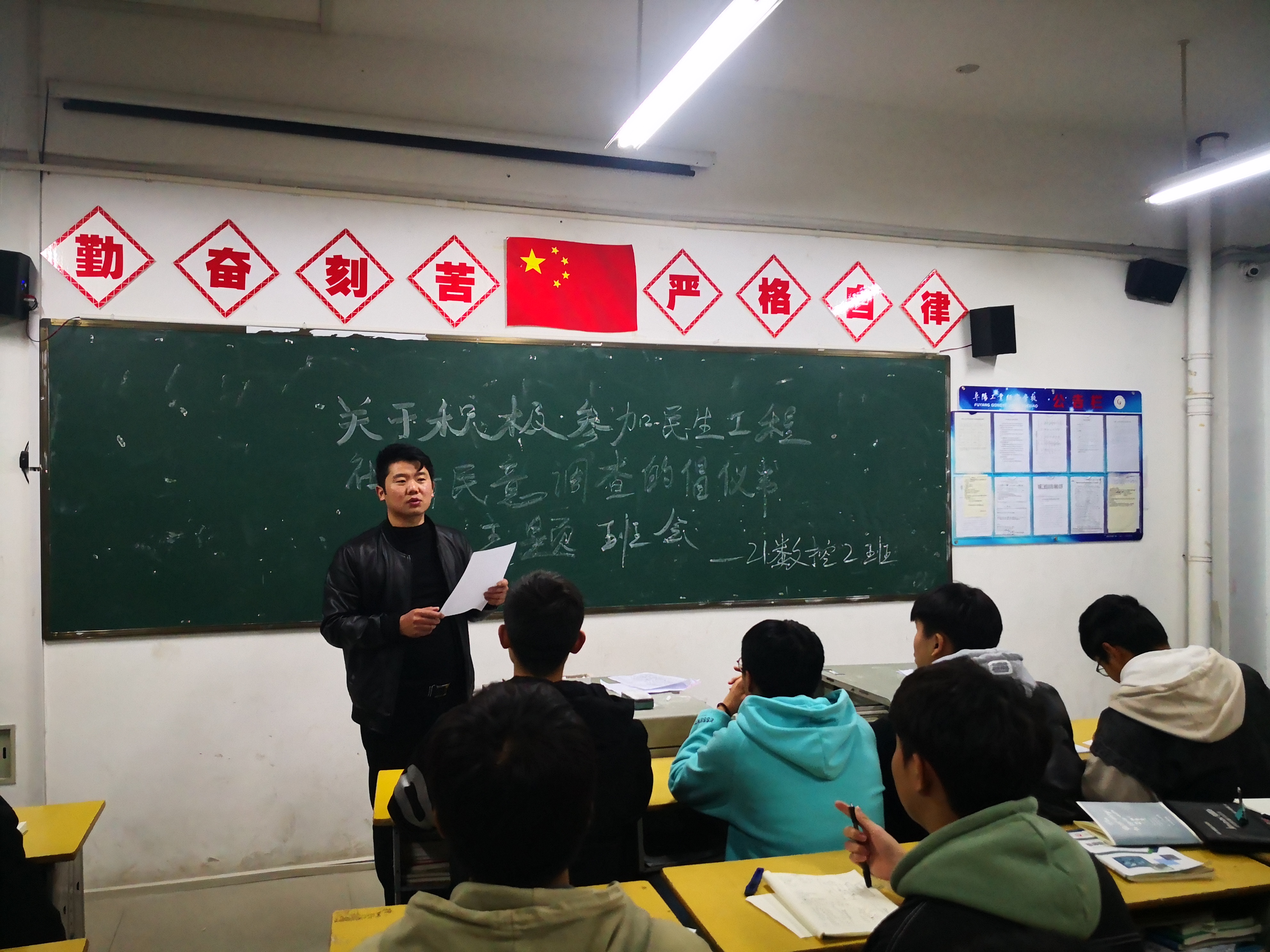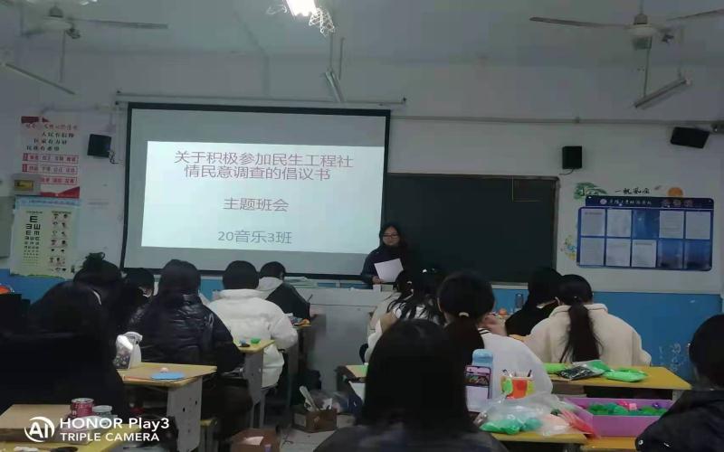 阜阳工业经济学校“关于积极参加民生工程社情民意调查的倡议书”主题班会