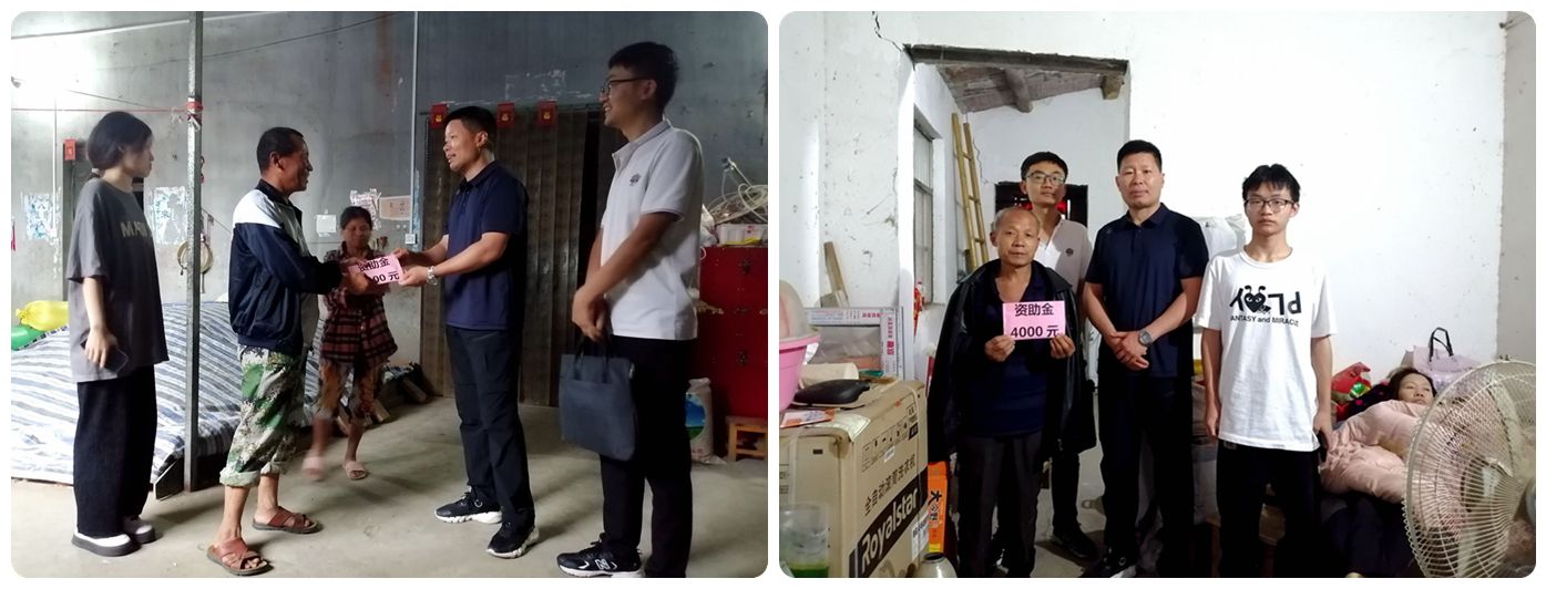 为认真做好家庭经济困难学生资助帮扶工作,加强学校与学生家庭之间的联系,切实关爱家庭经济困难学生,结合学校百千万大走访活动情况,近日,在学校资助办主任姜亮的带领下,资助办人员把学校的爱心与祝福送到了3个贫困学生家庭。使他们提前度过了一个温暖安康的端午节。