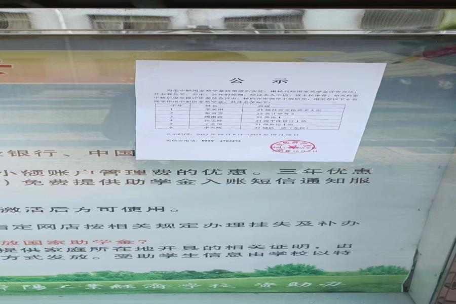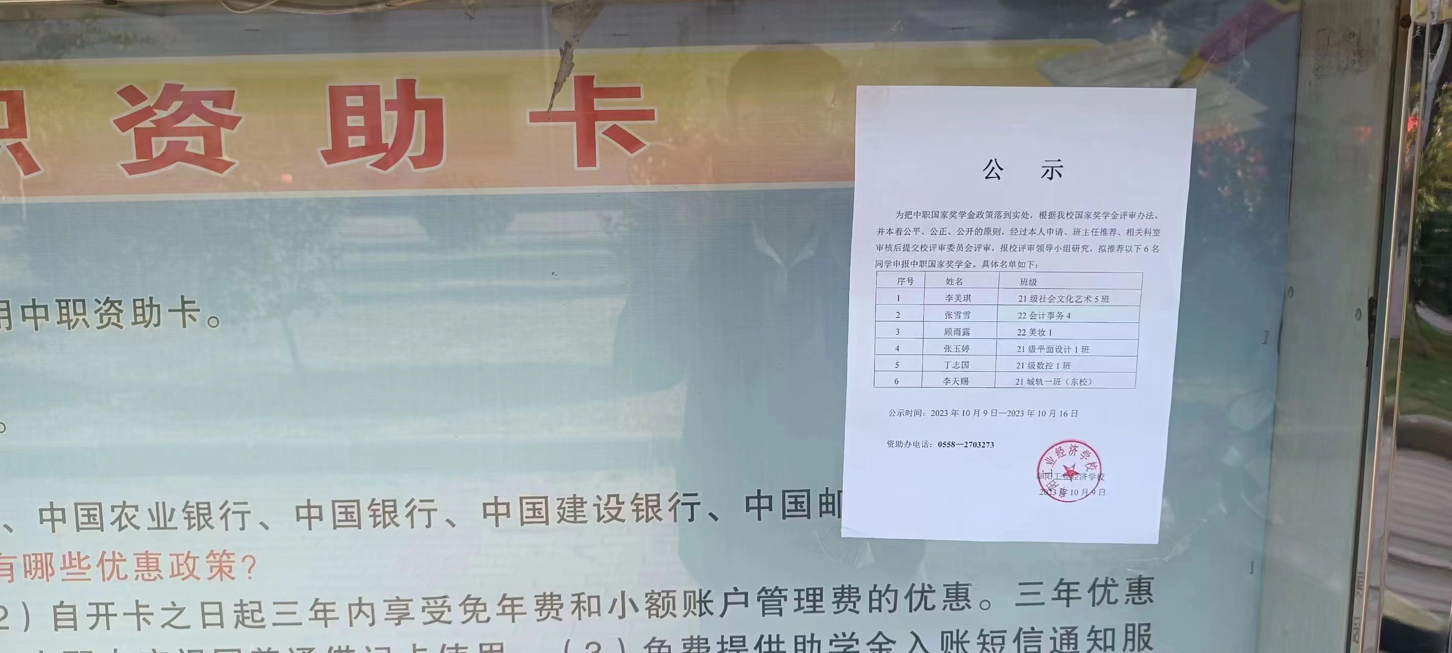 阜阳工业经济学校 2023年秋季学期资助、免学费公示