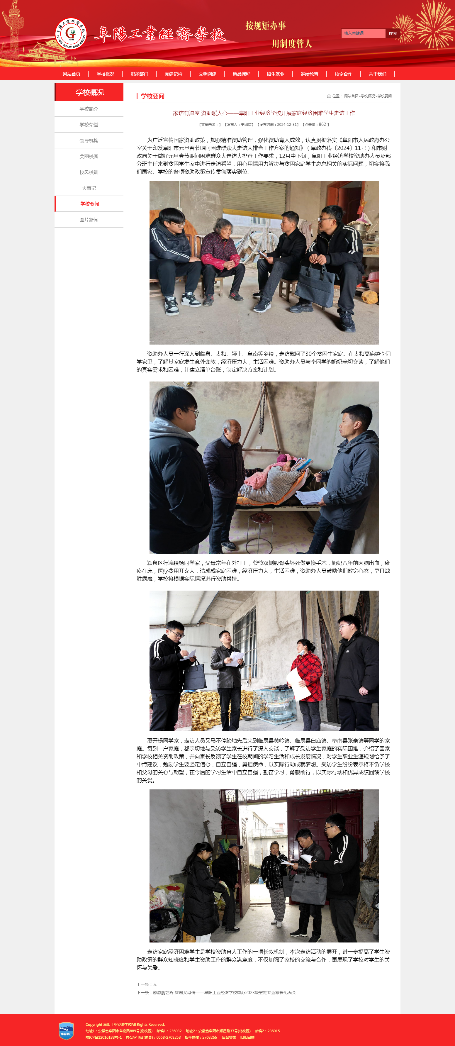 阜阳工业经济学校学校网站报道“阜阳工业经济学校开展家庭经济困难学生走访工作”