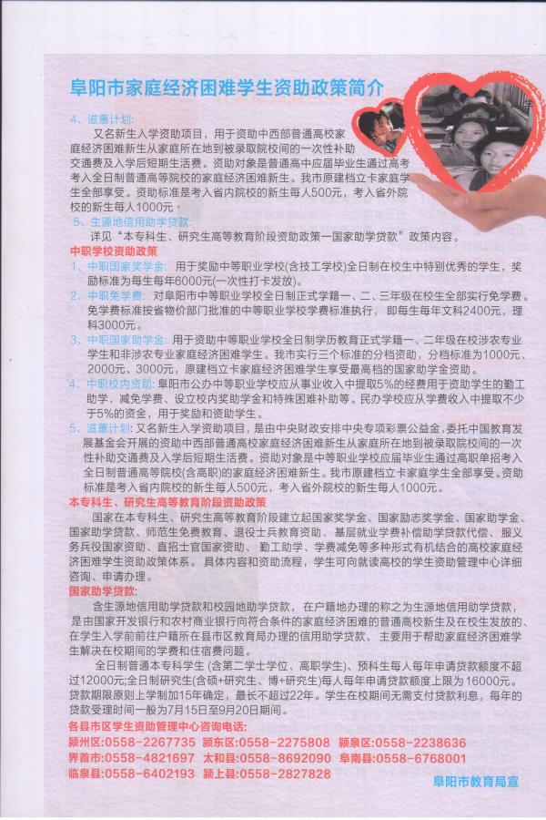 阜阳市家庭经济困难学生资助政策简介