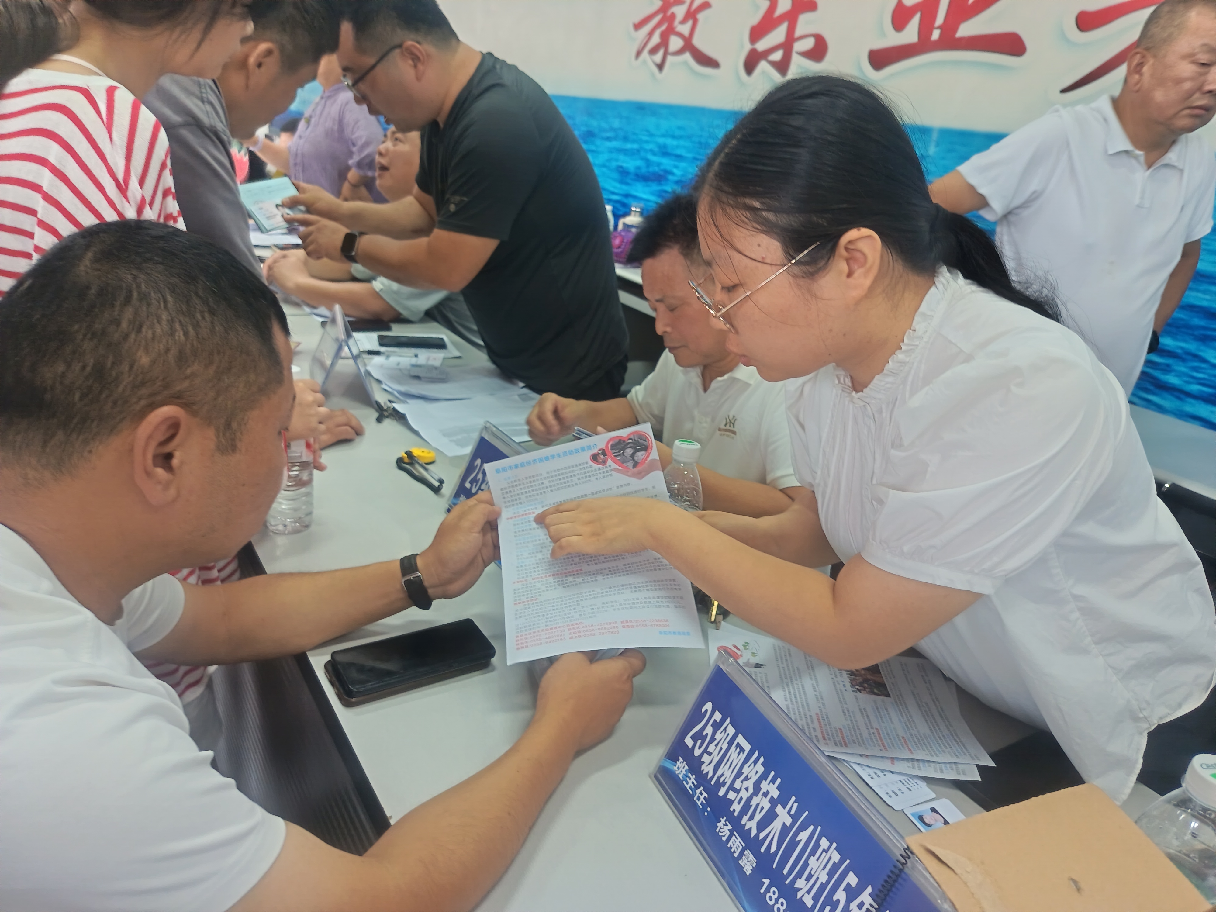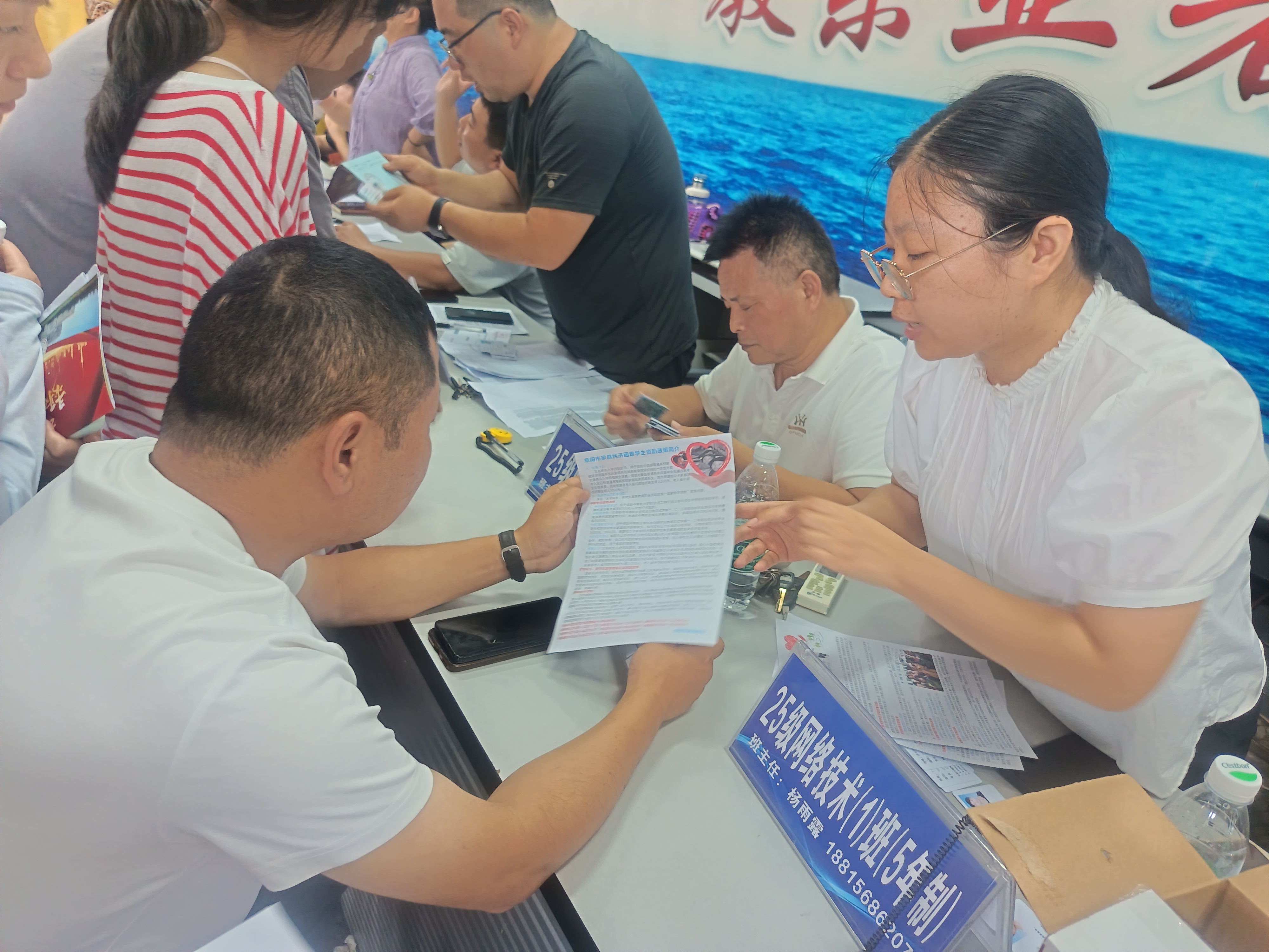 资助政策宣传是阜阳工业经济学校学生资助管理工作的重要组成部分。我校资助办工作人员利用82625级新生报到的有利时机,在校园及报名大厅现场为新生及家长解读国家资助政策,发放《中职学校家庭经济困难学生资助政策须知》、《家庭经济困难学生认定程序》等相关资助政策宣传资料。并通过观察了解掌握新生家庭经济状况,为今后做好贫困新生的资助工作打牢基础。